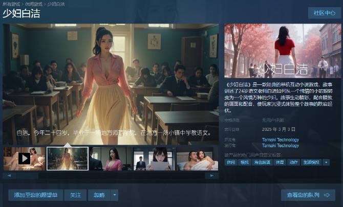 经典的单机互动小说游戏,故事讲述了24岁语文老师白洁如何从一个纯情的小姑娘转变为一个风情万种的少妇。故事生动精彩,配合精致的画面和配音,使玩家沉浸式体验整个故事的跌宕起伏…..