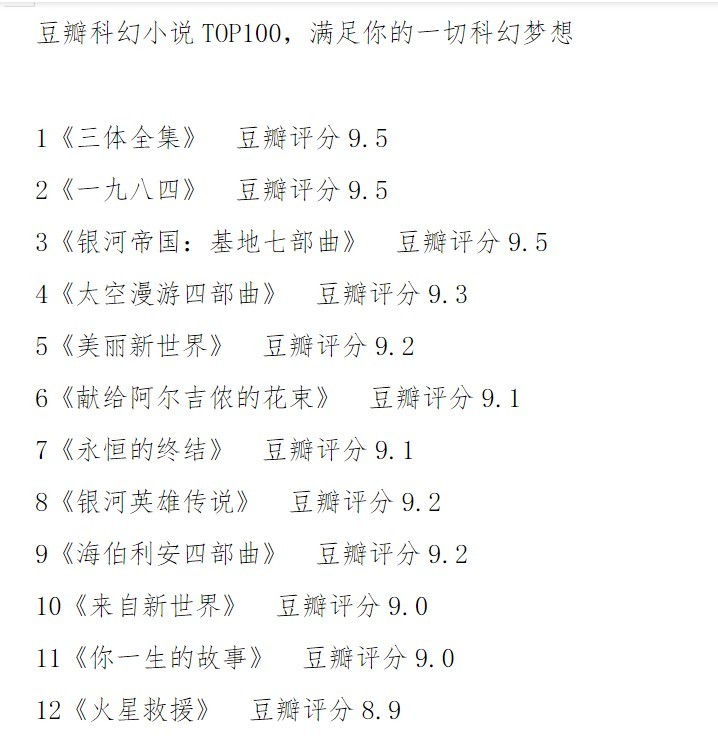豆瓣科幻书单300部+电子书合集,收录中外经典科幻小说 题材丰富 内容丰富 [219MB]