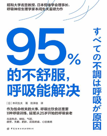 每天只需要5分钟 单凭锻炼呼吸力 健康寿命延长10年,《95%的不舒服,呼吸能解决》本间生夫【文字版PDF】本书作者本间生夫教授表示,延长人的“健康寿命”的一大关键就在于提高心肺呼吸力,单凭锻炼“呼吸力”,健康寿命就有可能延长10年。