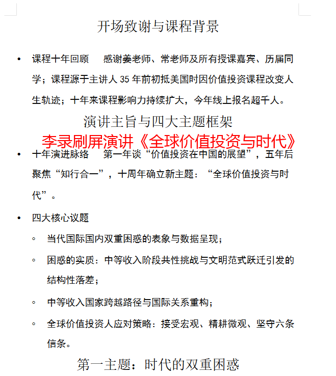 李录刷屏演讲《全球价值投资与时代》(完整版)(北大光华10周年庆)【201.4MB】