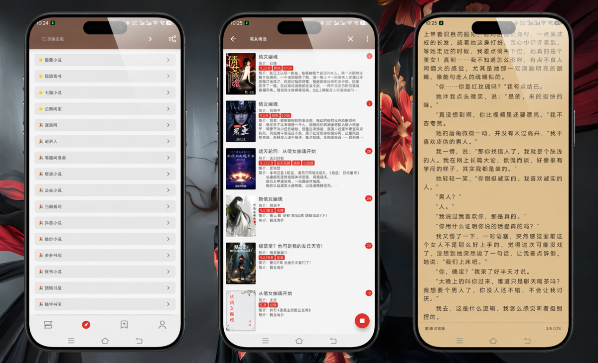 自定义阅读源:软件开放了丰富的API接口,支持用户手动导入第三方阅读源。这意味着即使某本书在主流平台下架,只要其他源头有更新,笔趣阁黑色版也能帮您轻松找到,真正实现“有书看,无死角”。